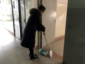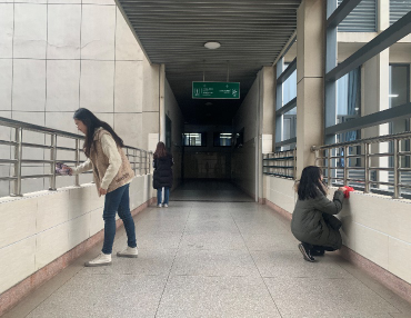 党建办公室成员负责一楼的清洁活动。五个部门的成员相互协调分工合作,分别对一楼不同的区域进行打扫。负责清扫的成员对走廊和楼梯口处进行了细节式的清理,尽力做到一尘不染;负责擦扶手栏杆的成员人手一布,擦拭隐秘处的污垢。活动过程中,每位成员都细心认真,不忽视任何一个角落,从中践行了志愿精神,体会了劳动意义。