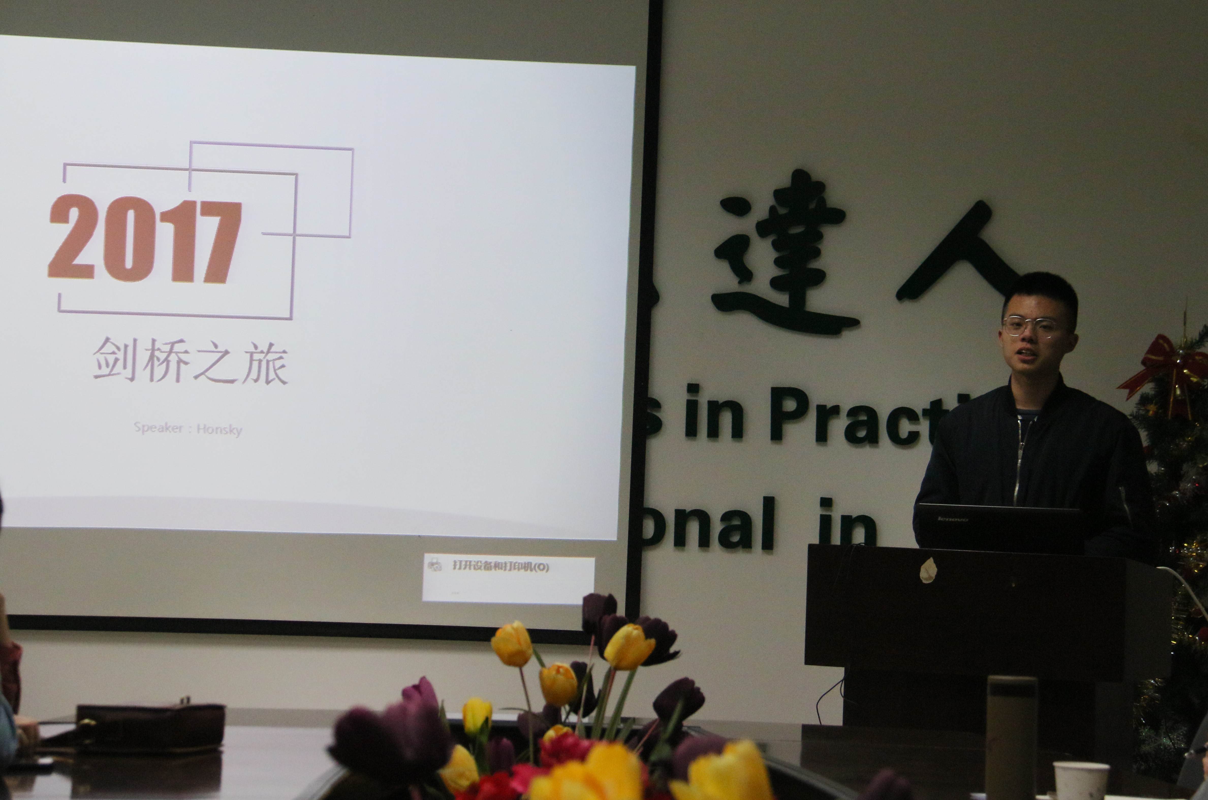 随后,来自英语1504班的黄世基与姚子烨分别分享了自己在英国剑桥大学访学期间的见闻。黄世基提到,要了解当地的文化,语言是基础,并且还要敢说、敢做、敢问,提前做好攻略。姚子烨则从学习体验、生活体验、人文体验、创新体验四个方面总结了此次访学之旅,并直言此次经历让英语实现了“输入”到“输出”的过程,同时也认识到了自己的不足。在有关房地产的课程展示中,他们所在的五人小组经过团队的通力合作,结合与众不同的创意,获得了第一名的好成绩。