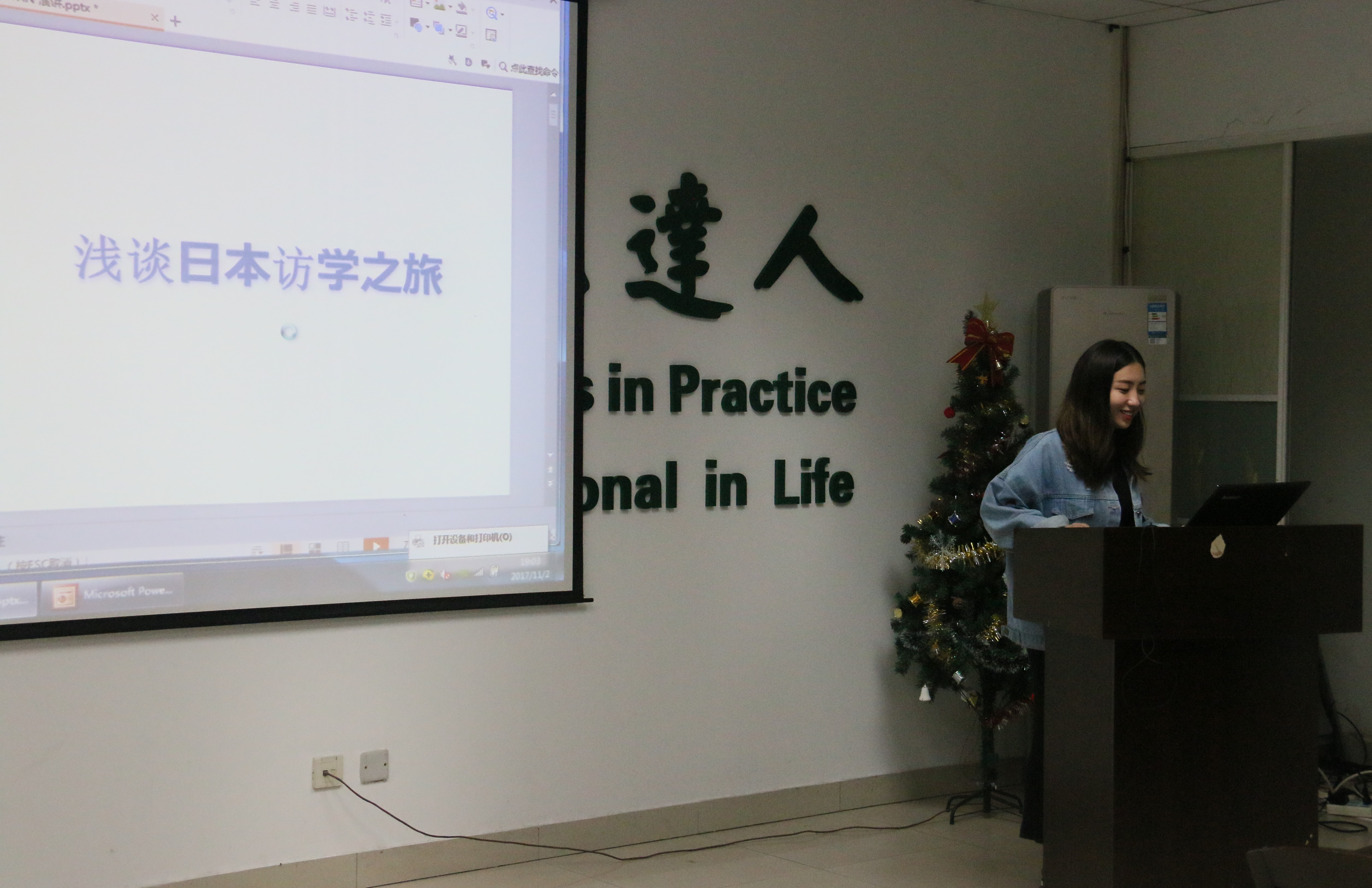 会上,来自英语1503班的刘策与商务英语1501班的毛捷分别在汇报中介绍了在日本访学期间的行程和项目涉及的相关课程,分享了在早稻田大学学习后的心得与体会,以及在日本游学时的见闻。她们都表示,在访学日本期间不但感受到了不一样的风土人情,而且让自己开拓了眼界。