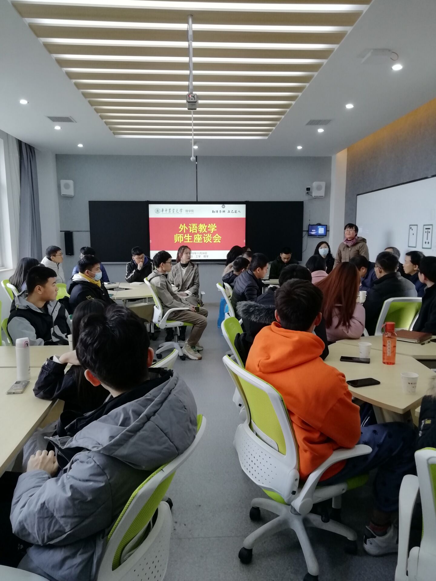 11月30日下午在逸夫楼B221召开公共外语教学师生座谈会。参加座谈会的有德赢Vwin官方区域合作伙伴、理学院、工学院分管教学副院长、教师代表、班主任代表和各年级学生代表,德赢Vwin官方区域合作伙伴党委书记胡守强参加了会议。座谈会由理学院副院长成协设主持。德赢Vwin官方区域合作伙伴副院长秦发兰指出,此次座谈既是德赢Vwin官方区域合作伙伴公共外语期中教学检查的一部分,也是进行公共英语教学改革的一次调研。